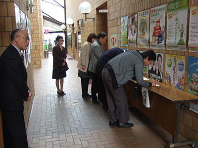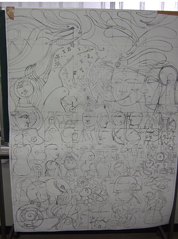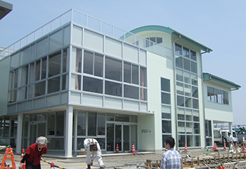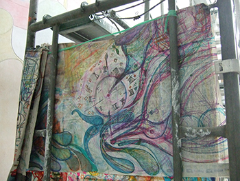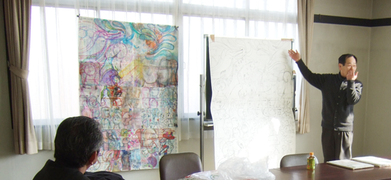 6月26日に当組合の創立100周年記念事業のトップをきって佐野駅前交流プラザ「ぱるぽーと」の内部壁画を制作しました。 フレスコ画は文星芸術大学美術学部の加藤忠一教授が、同大学の学生・卒業生ら7人と共に、 4月1日から5月14日の約1ヶ月半をかけて制作しました。
