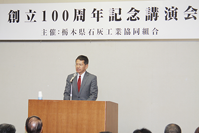 10月24日に「栃木県石灰工業協同組合創立100周年記念講演会」が、栃木商工会議所(栃木市)の第2ホールで行われました。 講師には栃木県立文書館指導主事の山本訓志氏をお招きし「江戸から明治時代の鍋山の石灰業」という演題で行われ、 多数の来場者で賑わいました。 慶長年間から始まった石灰業は、江戸時代の激変を経て明治末代には石灰産業の最大手までに成長しました。 その歴史の中には品質向上などの努力はもちろん、公害や社員に関する先進的な事例も多く、 先人達の歩みをこの100周年に振り返るための良い機会となりました。