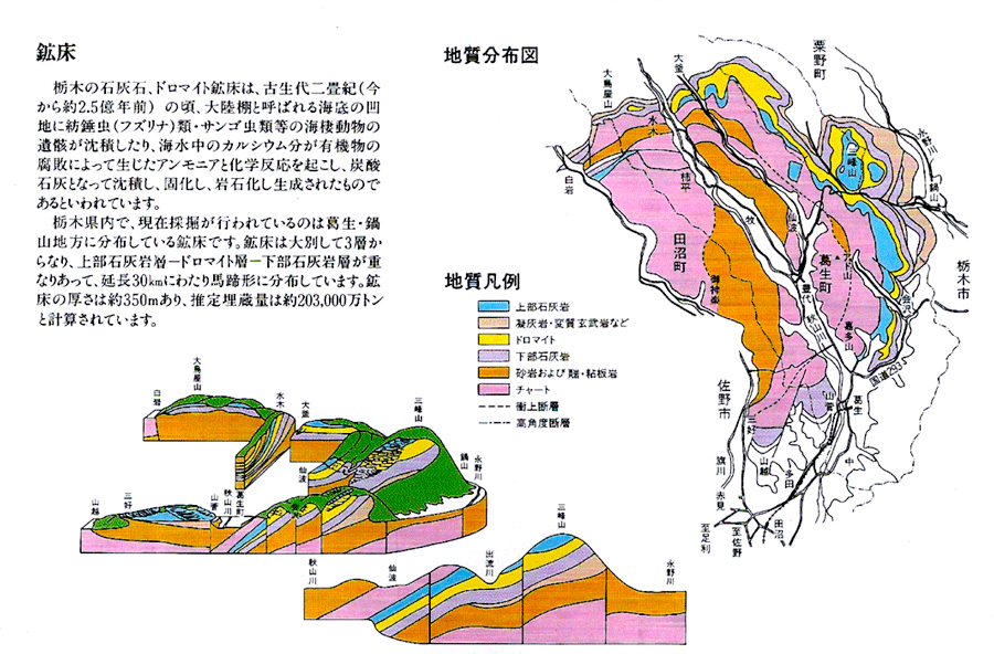 南の海のサンゴ礁が太平洋プレートに乗って移動し、日本海溝に沈むことなく 押し上げられ、 日本各地の石灰鉱床を生成したといわれています。 何億年もの時間をかけて、石灰石は造られてきました。 石灰は海外資源に頼ることなく、国内で自給できる数少ない資源のひとつで、 日本には石灰のとれる地域が点在しています。