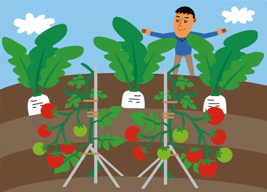 農作物を元気よく、収穫量も多く育てるには土の「酸度」が問題になります。 土が酸性になってしまうのは、人間の活動などで酸性化した雨(酸性雨)や 連続的な耕作などにより土が酸性化することが原因といわれています。 土が酸性化すると土に含まれる微量要素やアルミニウムイオンが溶け出すことで 植物の根の発達を弱め、栄養が不十分となり生育不良を引き起こしやすくなります。 つまり酸性化した土では、 作物の生産量が低下してしまいます。 石灰を使い土を中和し、 根の成長を促すことで作物を大きく育てる事が出来ます。
